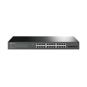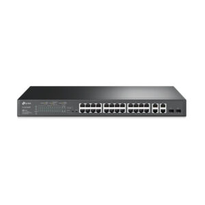 TP-Link Omada JetStream 28-port Gigabit L2+ upravljiv PoE+ preklopnik (Switch), 24×10/100/1000M RJ45 ports, 4×Gbit SFP, RJ45/Micro-USB Console port, 1U 19″ rack mount (384W)