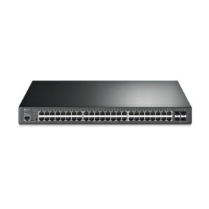 TP-Link Omada JetStream 48-port Gigabit L2 Smart PoE+ preklopnik, 48×10/100/1000 RJ45 ports, 4×SFP Gigabit, 1×RJ45 console port, 1×microUSB, 1U 19″ rack-mount (385W)