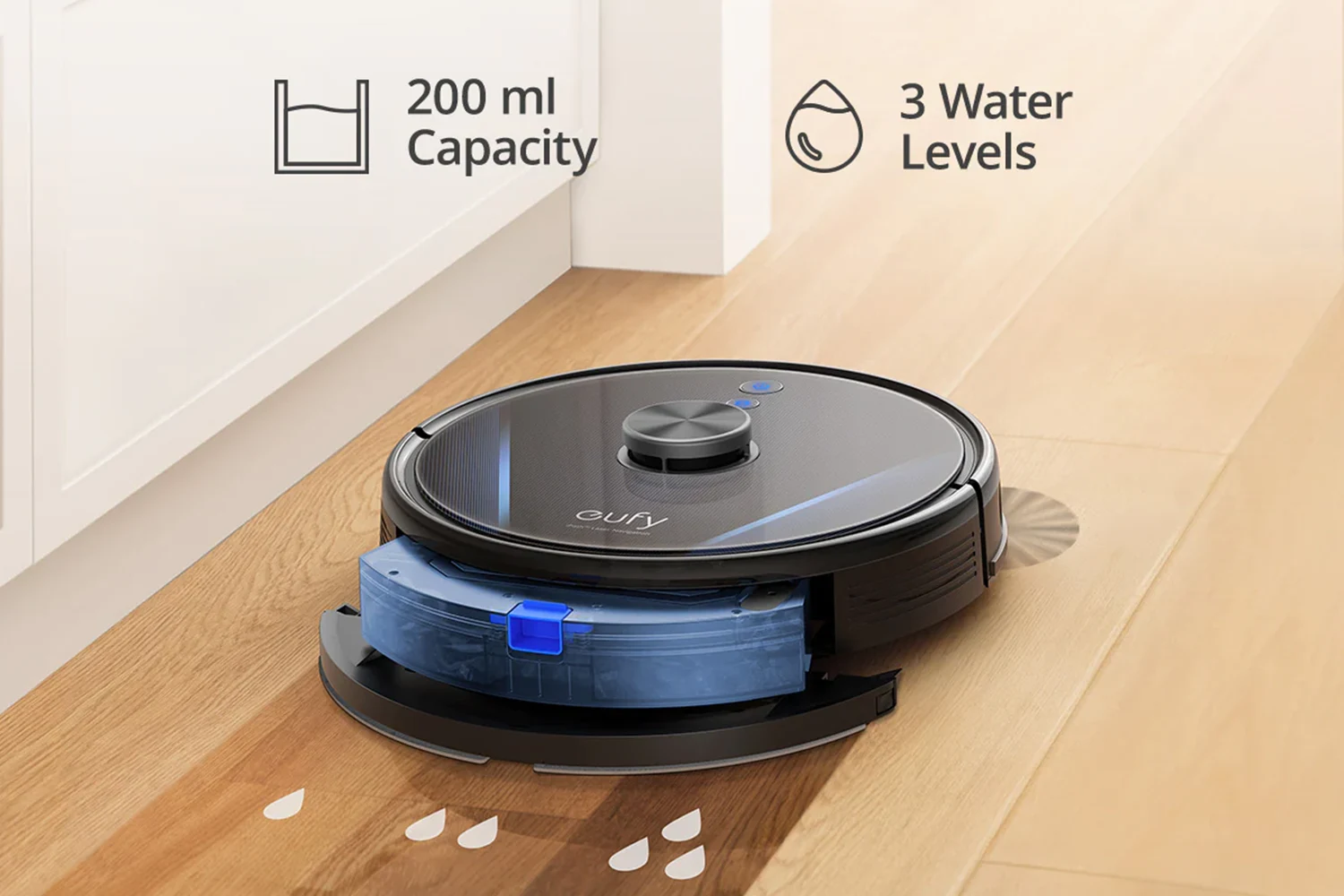 Uz ultra-jaku usisnu snagu od 3000 Pa, RoboVac može bez napora usisati krhotine za dublje čišćenje, ostavljajući vaše podove besprijekorno čistima. Njegov spremnik za vodu koji se može kontrolirati omogućuje vam odabir odgovarajućeg protoka vode za vaš pod, osiguravajući temeljito i učinkovito čišćenje.