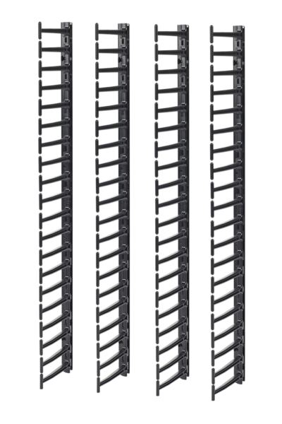 APC AR7717A, Vertical Cable Manager for NetShelter SX 42U Networking Enclosure (Qty 4). 2 piece cable management sections with smooth plastic fingers at 1U increments to allow patch cords to enter and exit in an organized manner.