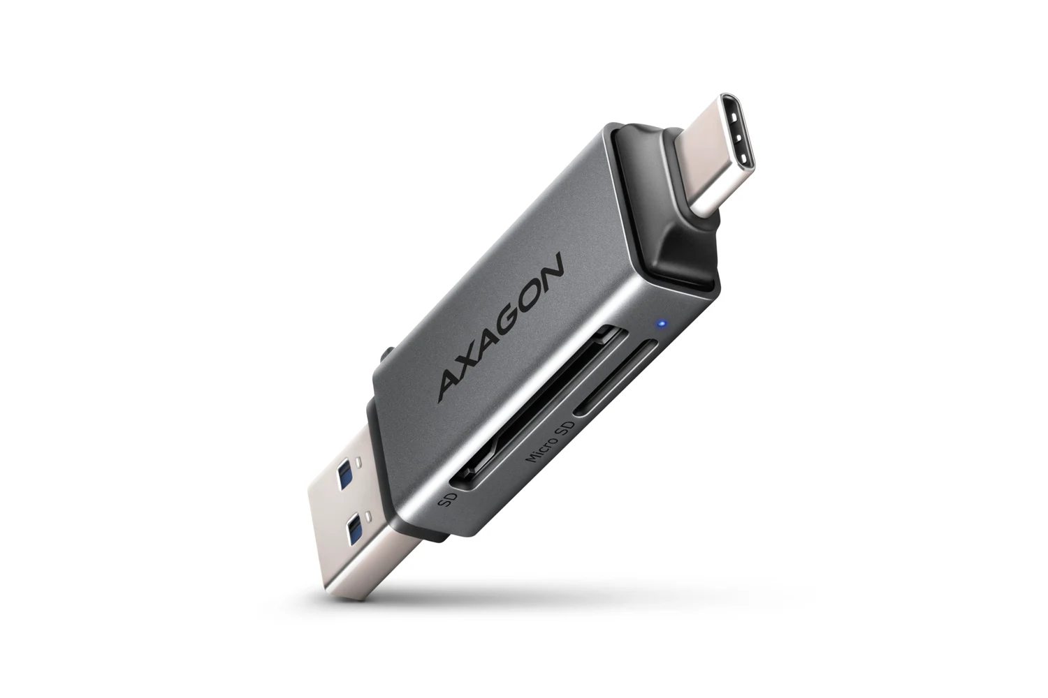Mobile Mini Memory Card Reader AXAGON CRE-DAC with USB 5 Gbps interface supports all current versions of SD and microSD cards including SDXC and microSDXC with capacities up to 2TB.
