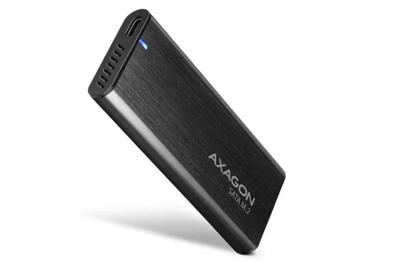 Vanjska aluminijska kutija AXAGON EEM2-SBC RAW s USB 3.2 Gen 2 sučeljem dizajnirana je za SATA M.2 SSD diskove. Dvostrani USB-C B konektor na kutiji zajedno s dostavljenim USB-C -> USB-A kablom omogućava pouzdanu vezu s računalom. SATA 6G sučelje vam omogućava uživanje u brzinama modernih M.2 SSD-ova. Brzina prijenosa je jednaka 10Gb/s zahvaljujući brzom USB 3.2 Gen 2 sučelju. Vanjska M.2 kutija također podržava ostale moderne funkcije poput UASP, TRIM i dozvoljava čitanje S.M.A.R.T. informacija koje prate status diska. SATA M.2 SSD diskovi se mogu koristiti u vanjskoj kutiji. Prednost je jednostavno postavljanje četiri različite veličine SSD kartica – 42, 60 i 80 mm. M.2 kartice mogu biti jednostrane ili dvostrane. Kutija ne umanjuje kapacitet umetnog SSD-a. Otvor kutije bez vijaka olakšava sastavljanje i rastavljanje M.2 SSD diska. Promjena diska je brza i jednostavna što povećava mogućnosti korištenja kutije npr. za migriranje podataka, testiranje i sl. Vanjsko metalno kućište je crne boje s elegantnim brušenim sjajem koja sprječava neželjene otiske prstiju. Obli dizajn kutije obećava ugodno korištenje. Aluminijsko kućište pruža veoma dobro hlađenje umetnutom M.2 SSD disku. Umetanjem M.2 SSD-a u kutiju stvorit ćete brz i kompaktan vanjski disk. Kutija se može koristiti s računalima i prijenosnim računalima kao i s mobitelima te tabletima.