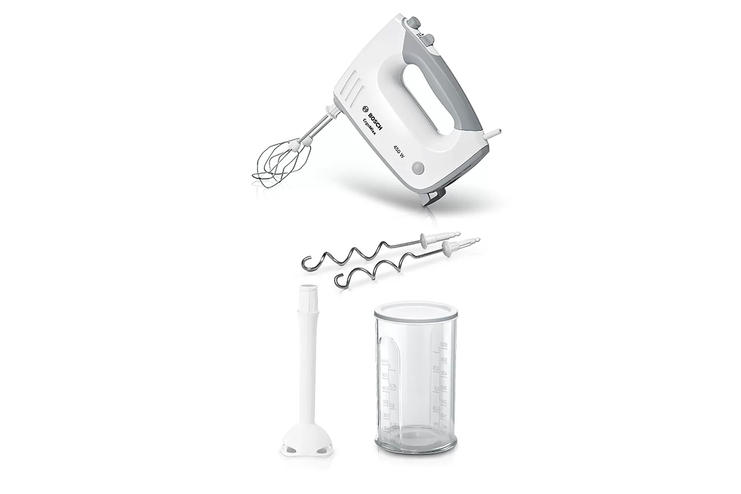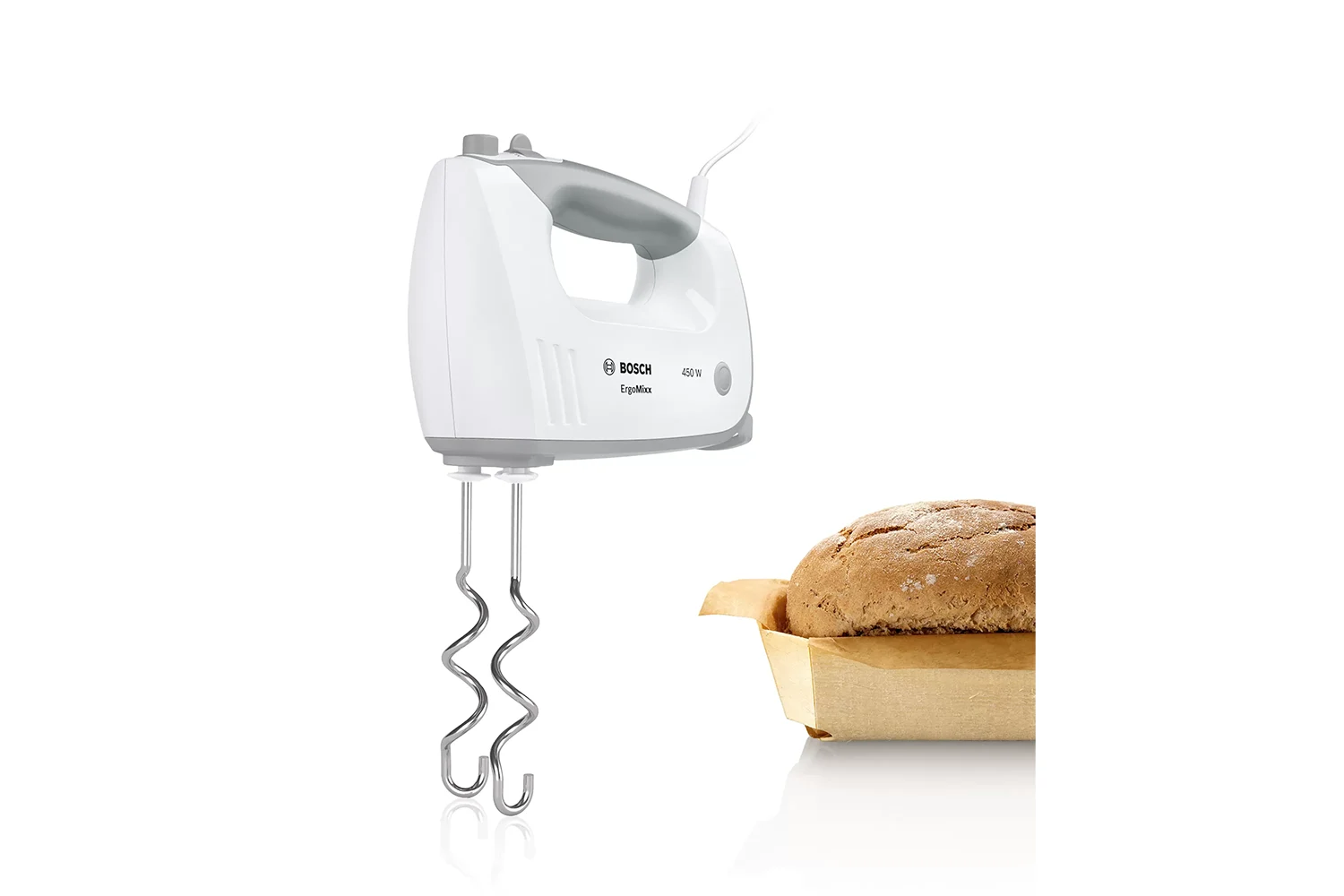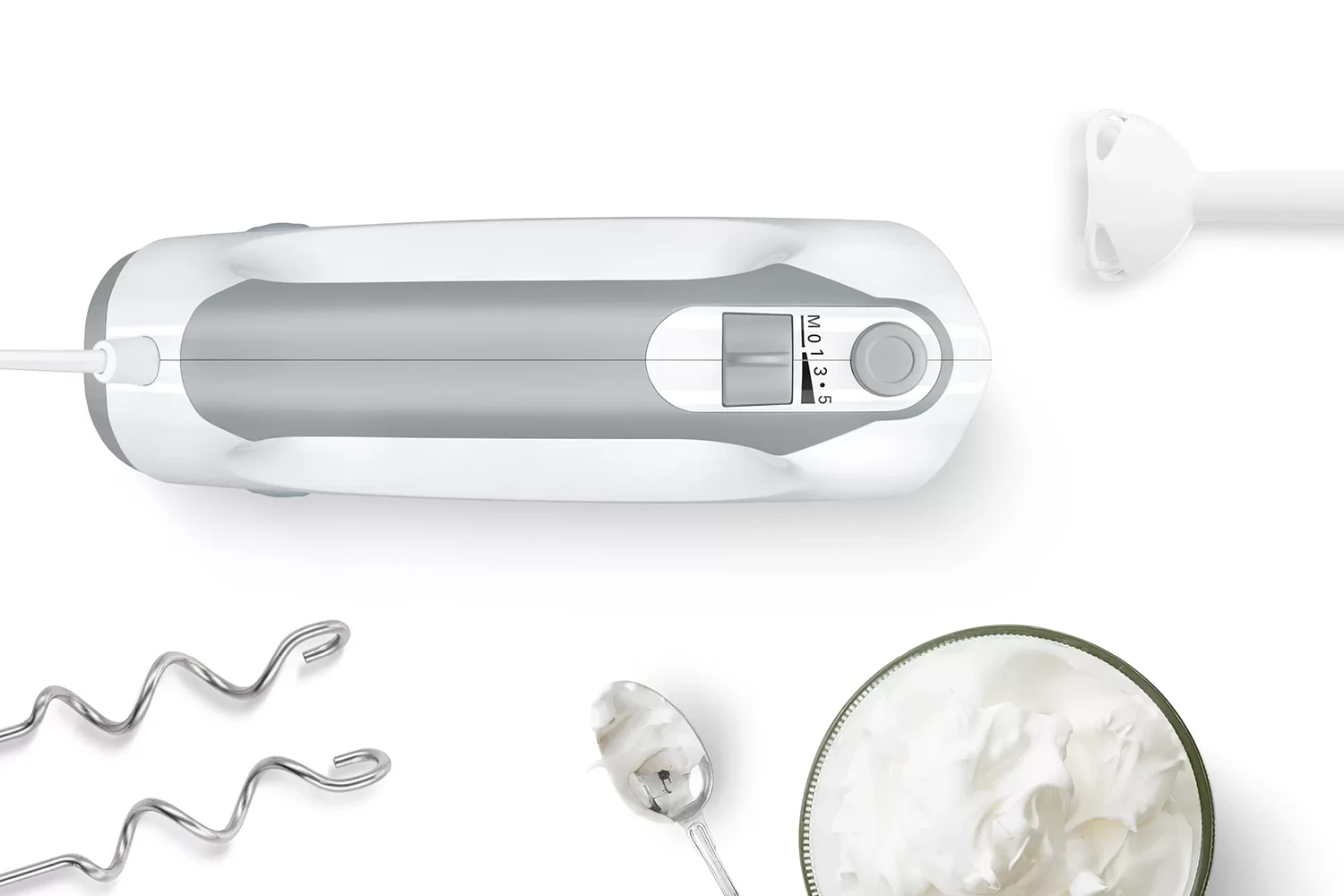 Ručna je miješalica opremljena glavom miješalice koja pruža više raznolikosti kod pečenja i kuhanja, poput pripreme voćnih nadjeva i punjenja za kolače, sladoleda ili ukusnih juha. Pričvrstite jednim jednostavnim klikom.