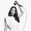 Mlaznica Dyson Smoothing nježno suši kosu pomoću širokog, blagog zraka; Dyson koncertrator Styling za oblikovanje kose (sada šira i tanja); Dyson difuzor ravnomjerno raspoređuje zrak oko vaših kovrča i tako pomaže smanjiti čupavost i poboljšava definiciju (sada s dužim zubcima za više kose); Protuklizna podloga i kukica za vješanje. Nježni zračni nastavak koji se koristi za snižavanje temperature sušenja i raspršivanje velikih površina protoka zraka.