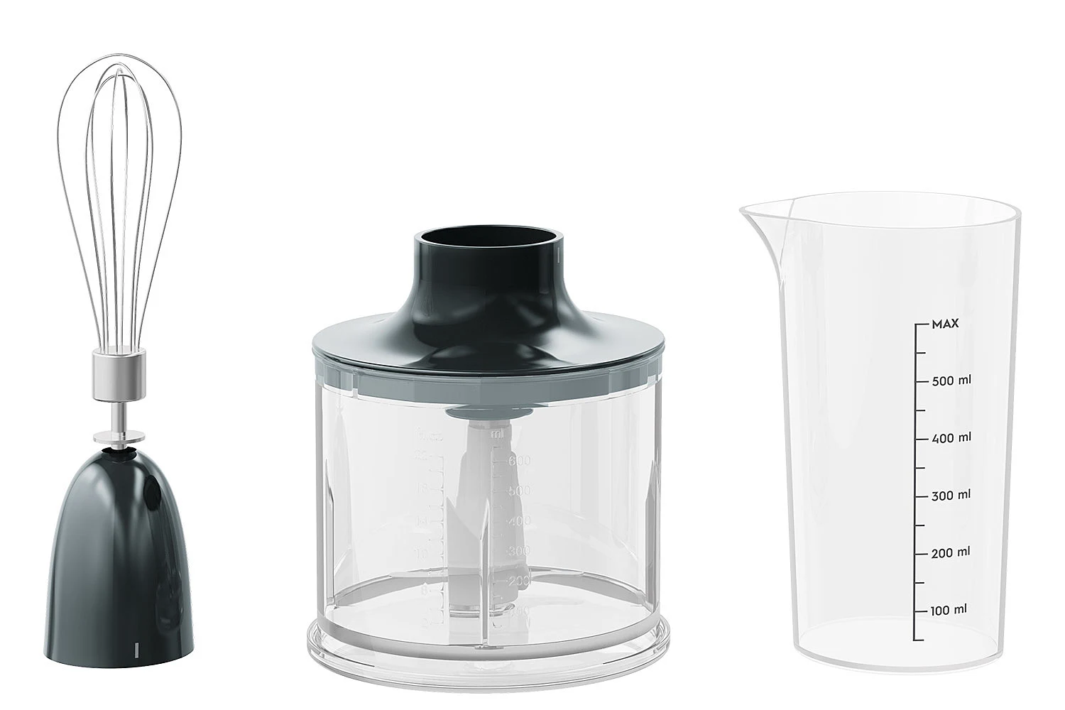 Smoothie napitci, umaci, pire, juha ili sjeckani luk. Ovaj višenamjenski kuhinjski alat pomoći će vam da postanete još bolji kuhar. Ručni mikser dolazi s pjenilicom, posudom i sjeckalicom.