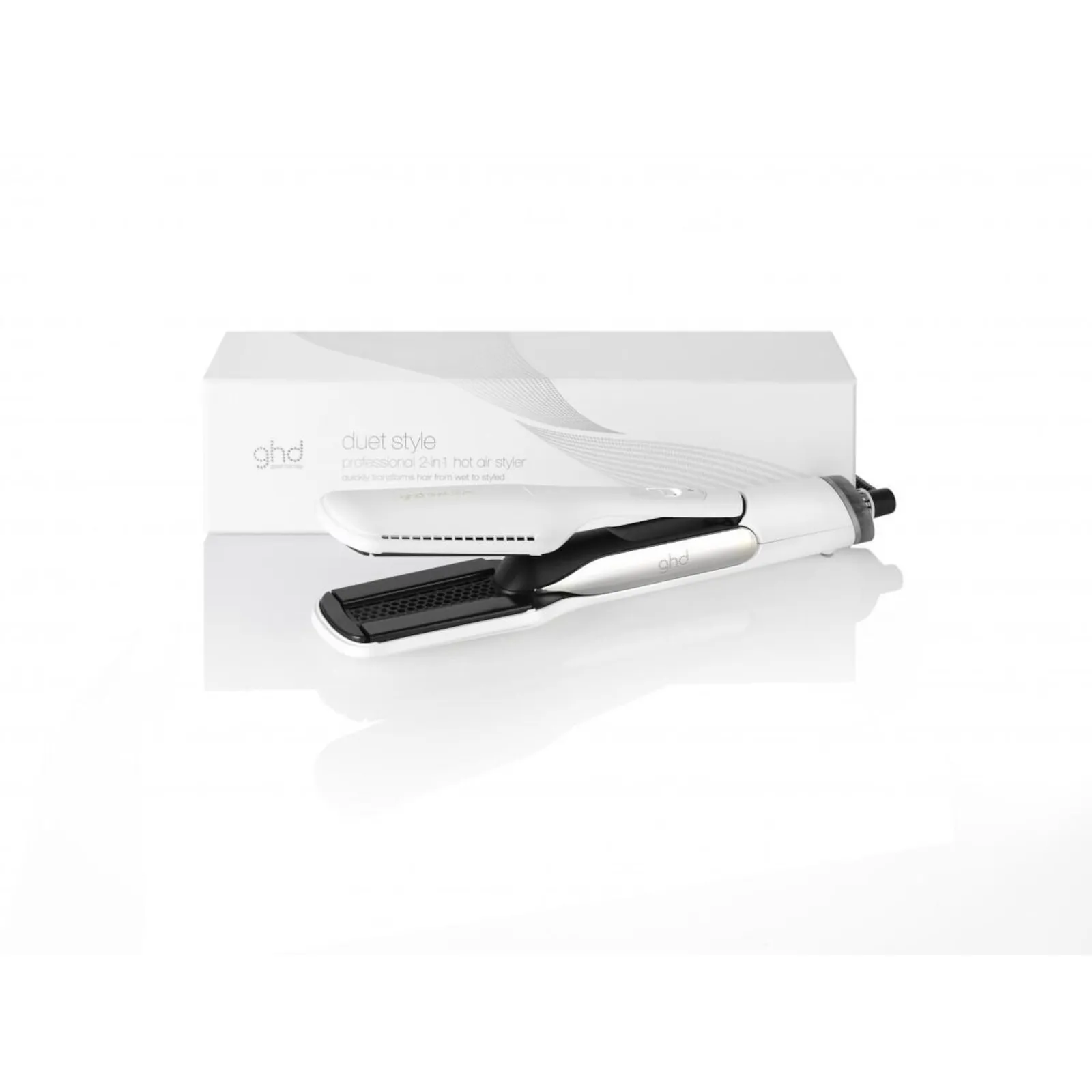 Prvi ghd duet style 2-u-1 uređaj za oblikovanje kose vrućim zrakom koji transformira vašu kosu iz mokre u stiliziranu – bez ikakvog oštećenja. Ghd duet style suši i oblikuje vašu kosu samo jednim alatom. Ghd duet style 2-u-1 uređaj za oblikovanje kose vrućim zrakom je pegla za kosu i sušilo za kosu u jednom.