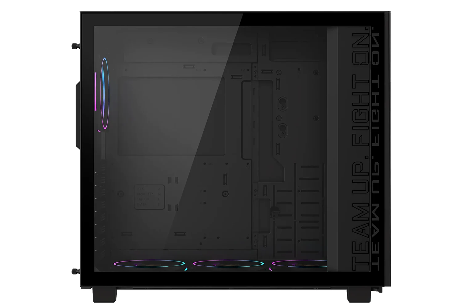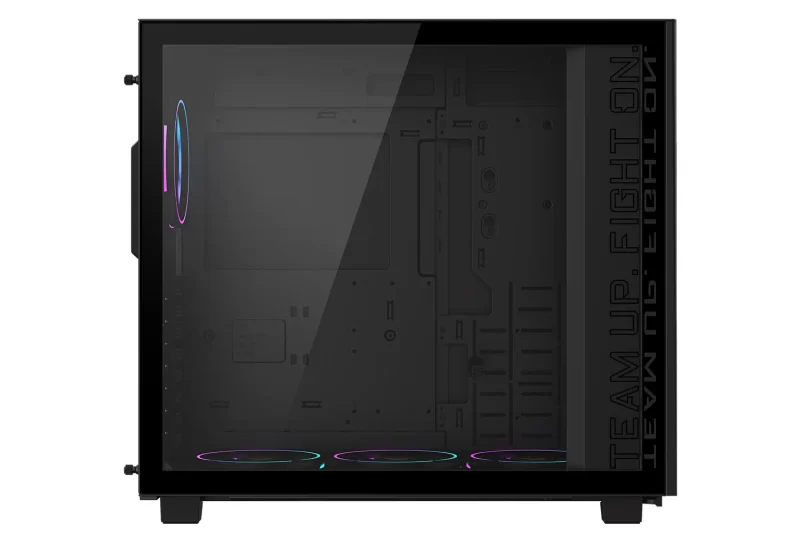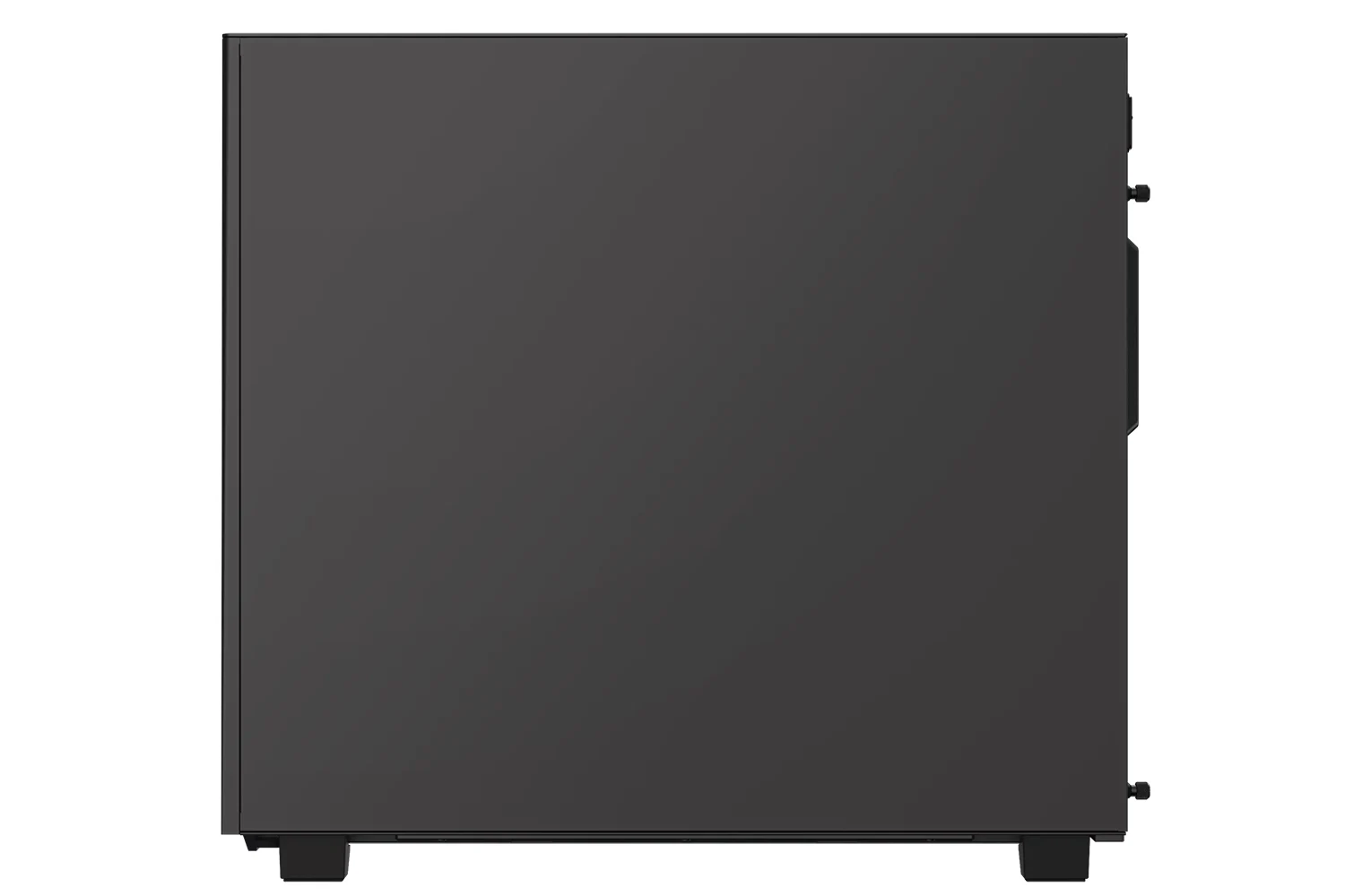 Bok kućišta izrađen je od 4 mm kaljenog stakla, pružajući jasan pogled na unutrašnjost i ističući komponente i rasvjetu. Staklena ploča je dizajnirana bez rupa za vijke, što smanjuje rizik od oštećenja i omogućuje jednostavno uklanjanje bez potrebe za alatima.
