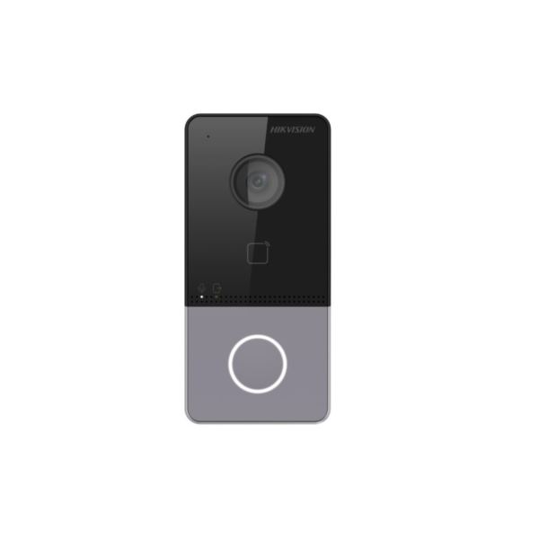 HikVision Outdoor Portafon sa jednom tipkom, 2MP Kamera, Mifare čitać kartica IR do 3m. IP65 zaštita. RS485, 4 alarmna ulaza, 1 izlazni relej, 10 100 Ethernet RJ45 Port. Bežično povezivanje. PoE napajanje ili 12 VDC. MicroSD slot do 128GB.
