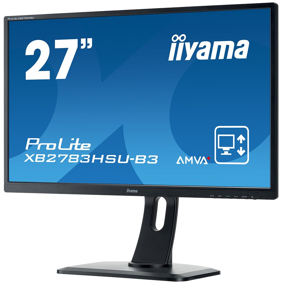 IIYAMA Monitor 27″ 1920×1080, 4ms, AMVA+ panel, 13cm height adj. stand, Pivot, 300cd/m2, VGA, DisplayPort, HDMI, Speakers, USB-HUB