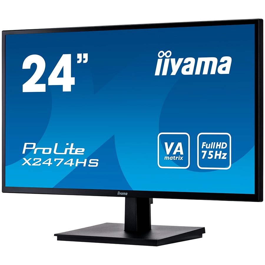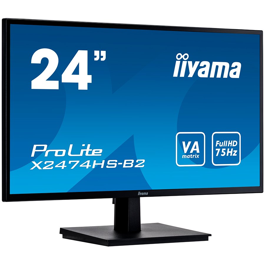 IIYAMA Monitor Prolite, 24″ 1920×1080, VA panel, 250cd/m², VGA, DisplayPort, HDMI, 4ms, Speakers (23,6″ VIS)