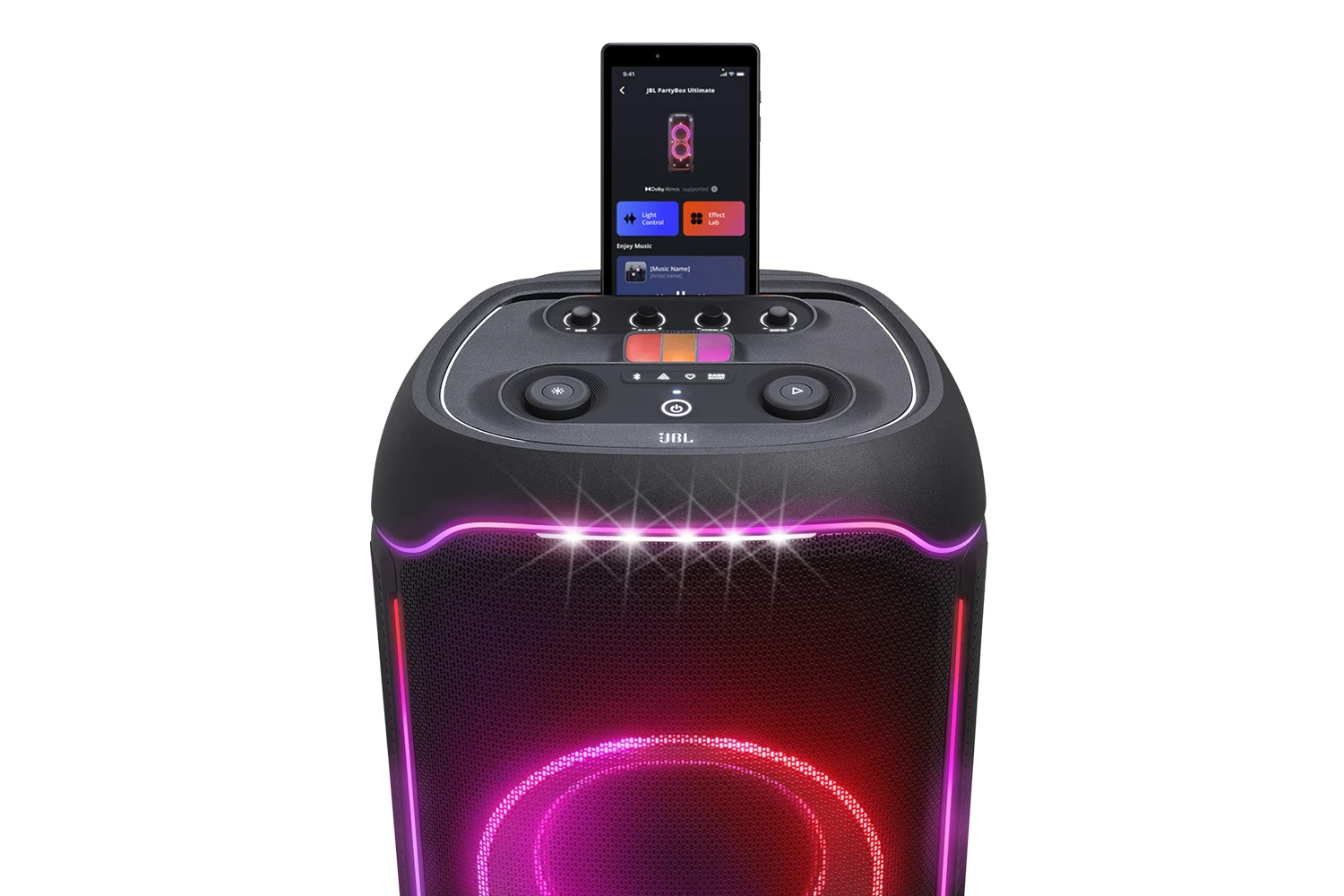 JBL PartyBox Ultimate može pokriti ogroman prostor—govorimo o dva košarkaška terena—s vrhunskim originalnim JBL Pro zvukom. S dva drajvera i zvučnikom srednjeg tona za jači zvuk. Dvostruki visokotonci i par subwoofera znače da će biti više nego dovoljno basa čak i za najposvećenije obožavatelje, dok Dolby Atmos* pruža impresivne 3D prostorne efekte. Ovo je vrsta gromoglasnog zvuka koju nećete samo čuti, već i osjetiti.