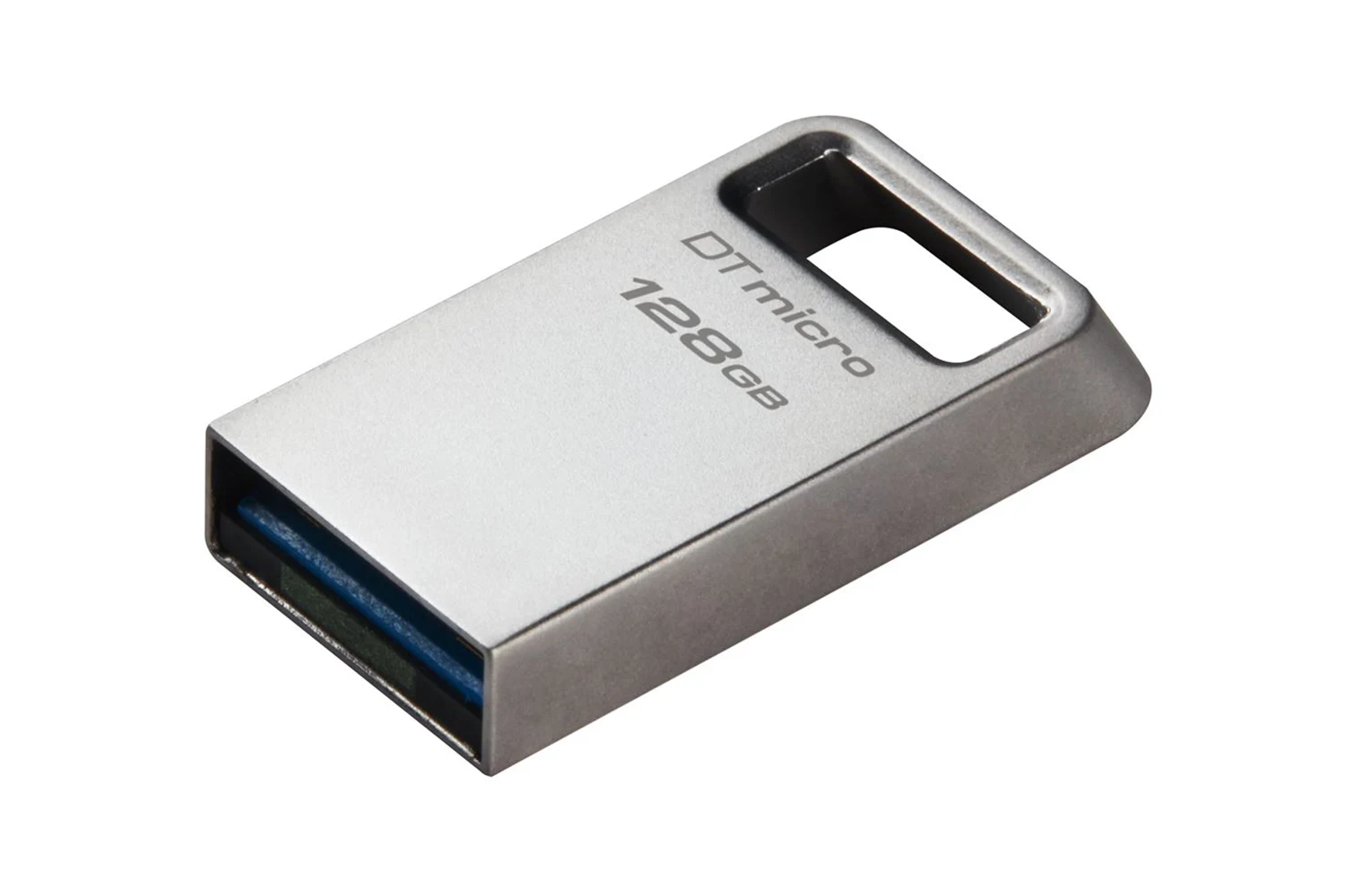 DataTraveler® Micro je ultra-mali, lagani USB pogon idealan za praktičnu plug-and-stay pohranu koji je kompatibilan s računalima, pisačima, igraćim konzolama i više. Pogon je dizajniran s niskoprofilnim, vrhunskim metalnim kućištem i ugrađenom petljom za ključeve za ostavljanje u USB priključcima bez smetnji. DT Micro donosi USB 3.2 Gen 1 brzine do 200MB/s čitanja i do 128GB kapaciteta za brzi prijenos i pohranu velikih datoteka kao što su filmovi, glazba, igre i fotografije.