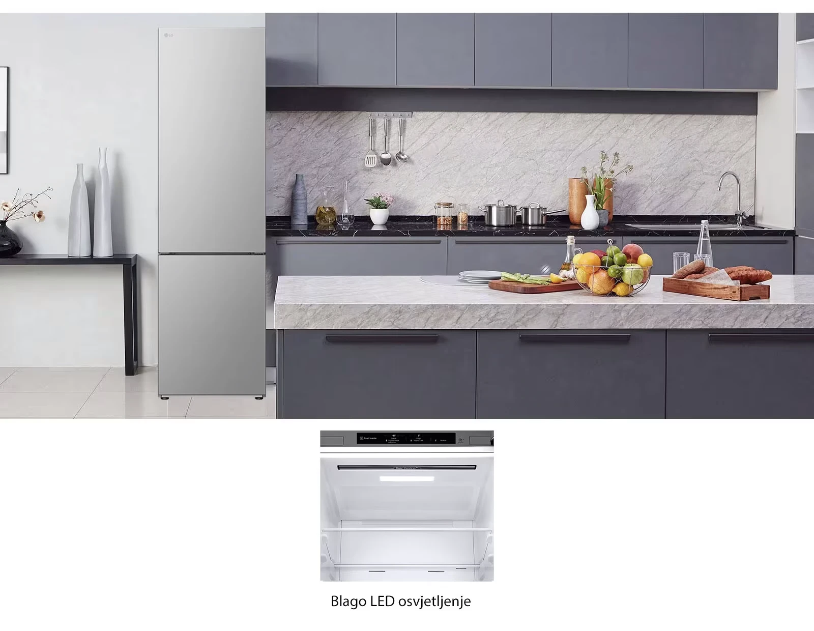 LG Smart Inverter Kompresor pomaže u dužem održavanju izgleda i okusa svježih proizvoda smanjujući oscilacije temperature.