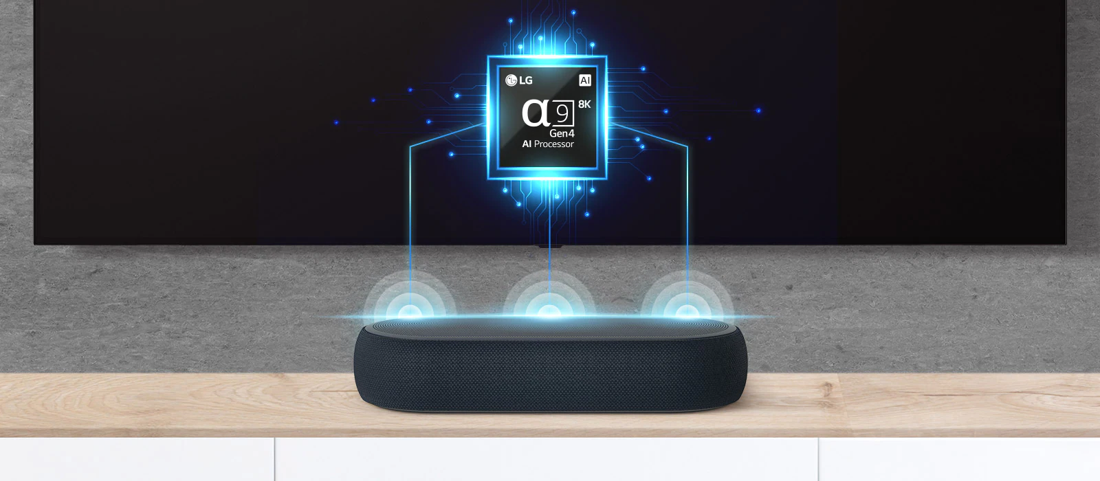 Nadograđeni 2021 Alpha 9 procesor umjetne inteligencije pomaže vašem LG soundbaru da proizvodi bolji zvuk. Dijeljenje načina zvuka televizora omogućuje soundbaru da upotrebljava procesorsku snagu televizora i tehnologiju AI zvuk Pro kako bi sve što čujete bilo jasnije i dosljednije, čak i iz različitih izvora sadržaja. Samo kombinacija LG soundbara i LG televizora omogućuje vam da svoj televizor doživite u najboljem izdanju.