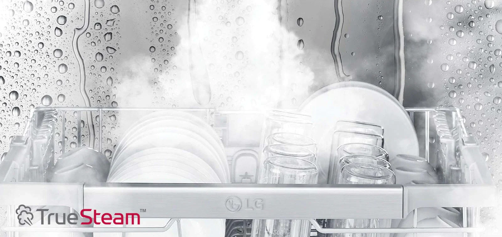 Tehnologija TrueSteam™ koristi vodenu paru za dosezanje cijele površine svakog komada posuđa u perilici, čime se jamči blistava čistoća posuđa. Čiste vodene čestice pare također pomažu pri smanjivanju prisutnosti mrlja od vode (kamenca).