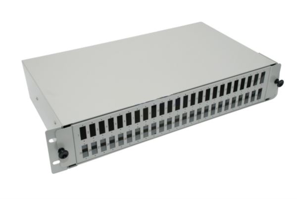 NFO Patch Panel 2U 19″ – 48x SC Duplex, Slide-out on rails, 2 trays