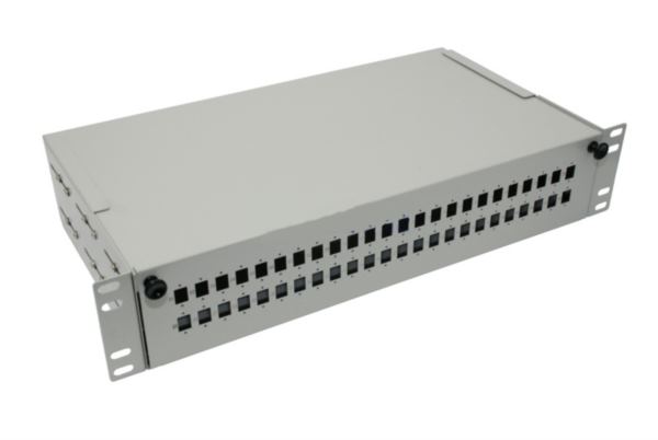 NFO Patch Panel 2U 19″ – 48x SC Simplex LC Duplex, Pull-out, 2 trays