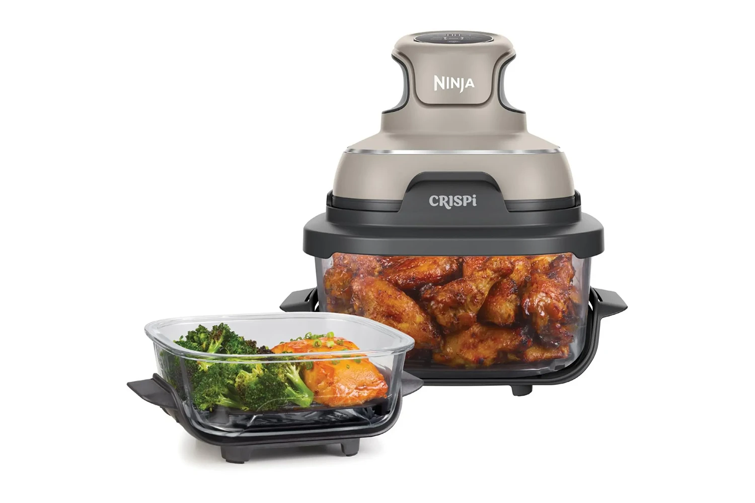Upoznajte Ninja CRISPi 4-u-1 prijenosni sustav za kuhanje – snagu friteze na vrući zrak pune veličine, kompaktnu u vašoj ruci. Jednostavno stavite lagani PowerPod od 1700 W na bilo koju staklenu posudu za kuhanje kako biste pripremili obiteljske ili pojedinačne porcije s 4 funkcije kuhanja. Osim toga, možete kuhati s do 50% manje energije nego s konvekcijskom pećnicom*.
