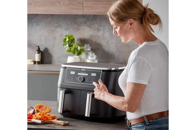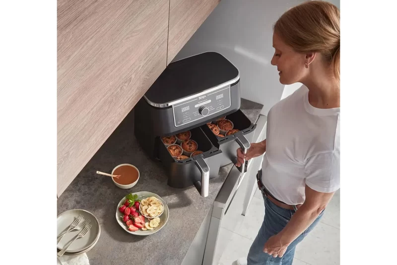 | Sadržaj pakiranja | 1 x Glavni uređaj 2 x Košare za fritezu na vrući zrak od 4,75 L s neljepljivim premazom 2 x Rešetkasti umetci s neljepljivim premazom 1 x Korisnički priručnik 1 x Knjiga recepata |