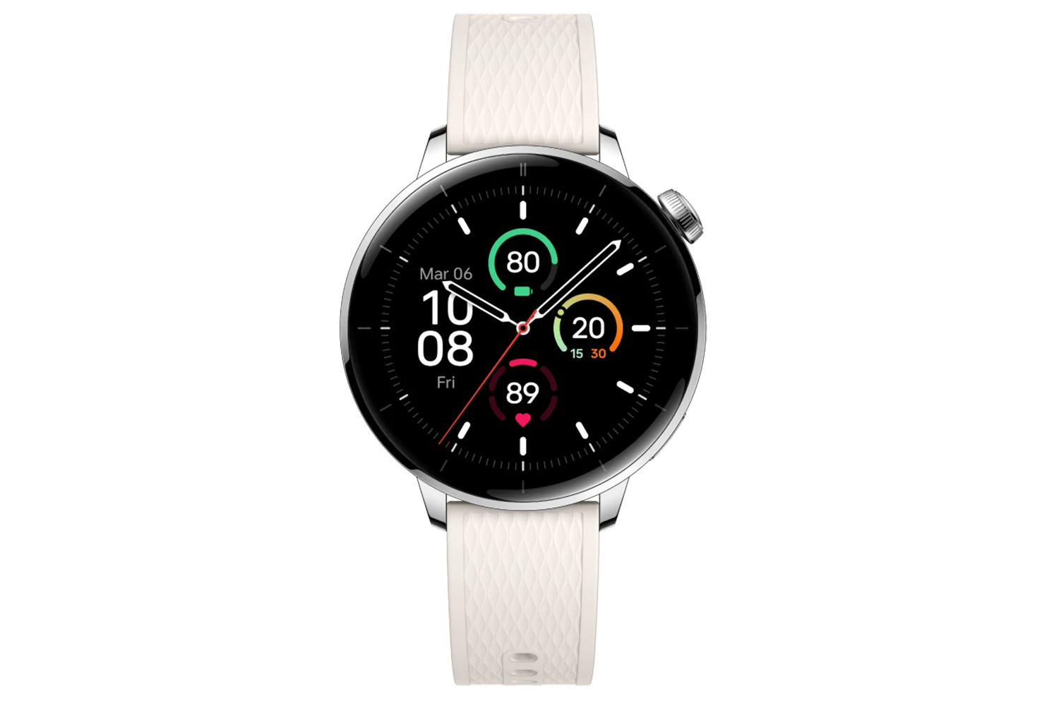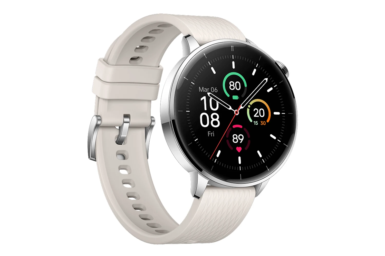 Sati su opremljeni 1,32-inčnim AMOLED zaslonom visoke rezolucije (466 × 466 piksela) s izvrsnom čitljivošću i živim bojama, a elegantna kućišta od srebrnog nehrđajućeg čelika dodatno naglašavaju premium dojam kada se sat nosi u profesionalnom, casual ili sportskom okruženju. Njegova kompaktna veličina s promjerom kućišta od 43 mm i lagana konstrukcija omogućavaju udobno nošenje tijekom cijelog dana.