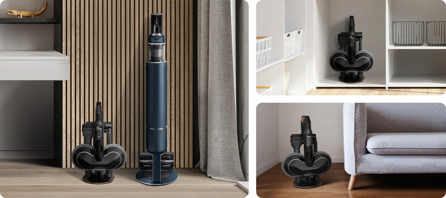 Sačuvajte sve svoje praktične nastavke na jednome mjestu zahvaljujući dodatnoj kutiji. Ubacite četke, filtre i čak napunite rezervnu bateriju* u ovom uređaju za pohranu koji je uključen uz vaš bežični usisavač Samsung.