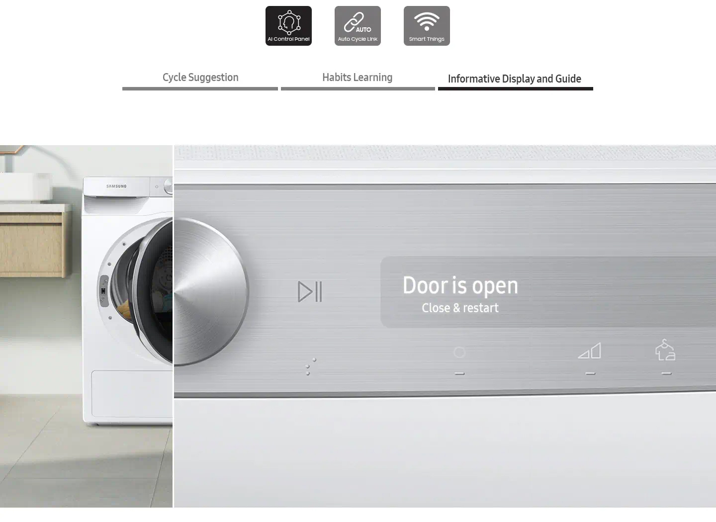 Rublje sušite učinkovito i s lakoćom zahvaljujući AI Control upravljanju s pomoću umjetne inteligencije. Personalizira ciklus sušenja pamćenjem Vaših navika, predlaganjem ciklusâ, i prikazivanjem pravodobnih informacija. Aplikacija SmartThings* pruža Vam savjete o ciklusima, planiranju i otklanjanju poteškoća. Odabire i program sušenja koji savršeno odgovara odabranom ciklusu pranja**.