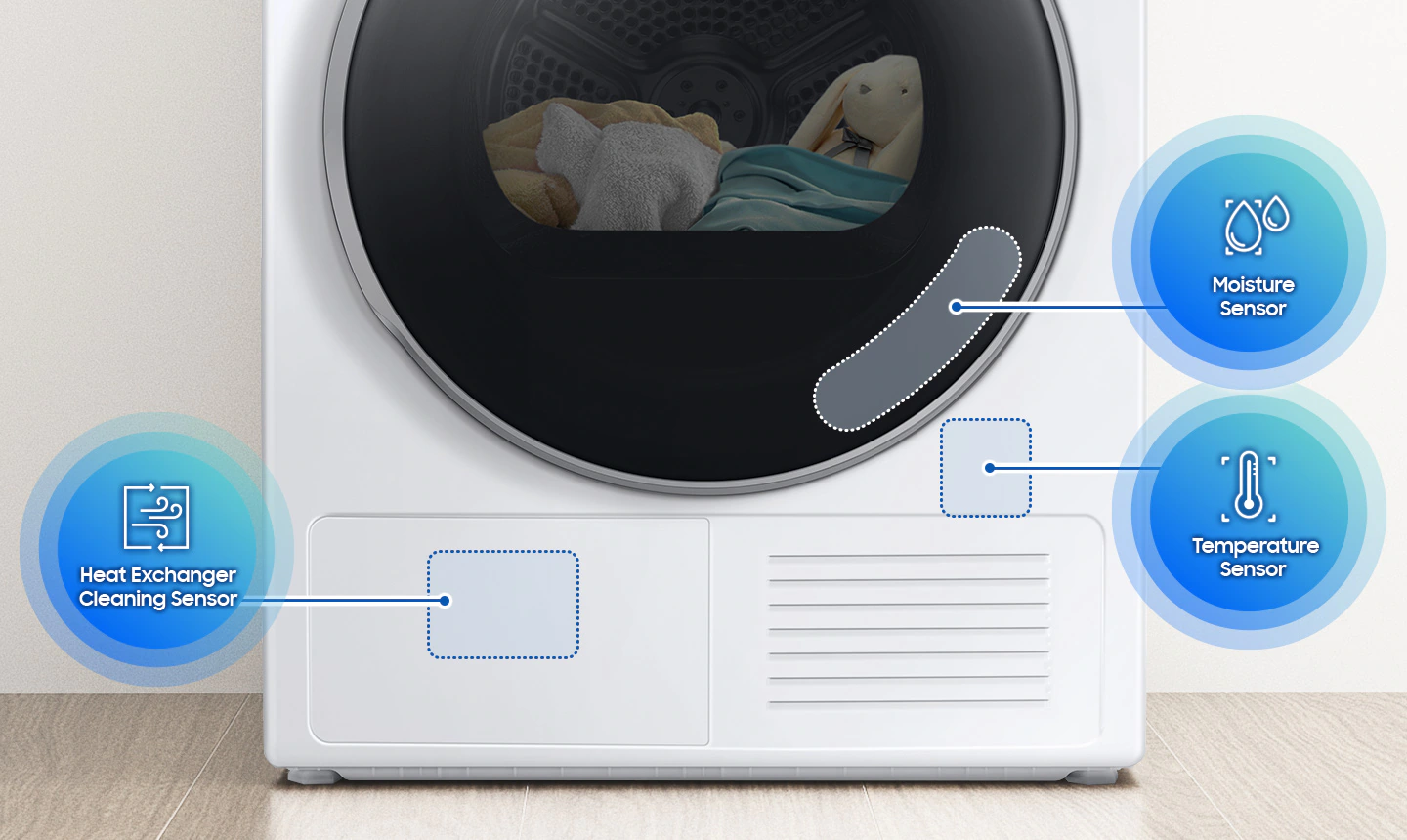Jednostavna optimizacija učinkovitosti sušenja! OptimalDry tehnologija upotrebljava tri senzora za postizanje najboljih rezultata. Nadzire razinu vlažnosti i tomu prilagođuje vrijeme sušenja kako bi rublje brzo bilo spremno, uz minimalnu potrošnju energije. Također sprječava oštećivanje odjeće i podsjeća Vas kada je vrijeme za čišćenje izmjenjivača topline.