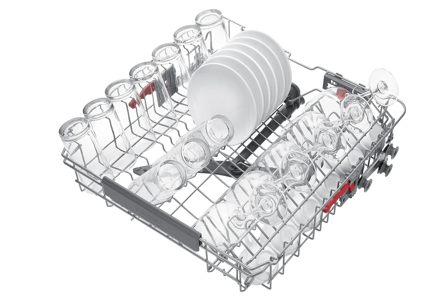 Jednostavnije i sigurnije slaganje različitog posuđa, čaša i šalica. Kut zubaca u srednjoj košari moguće je namještati trima postavkama s pomoću ručice iza nje. Zupci donje košare također se sklapaju prema dolje kako biste mogli složiti veliko posuđe. A funkcija Tumbler Support sigurno na mjestu drži osjetljivo posuđe poput čaša.