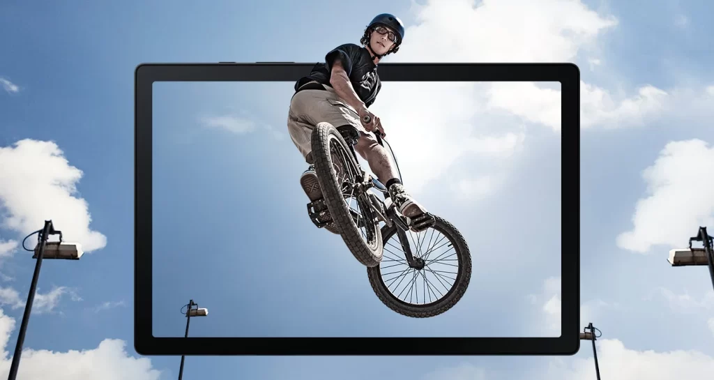 Uz zaslon od 10,5” sa simetričnim okvirom od samo 10,2 mm možete se potpuno udubiti u sadržaj na zaslonu. Istražite bez kompromisa. Galaxy Tab A8 poziva vas u veći svijet sadržaja s većom i boljom slikom, od spektakularnih filmova do sadržaja o Vašemu omiljenom hobiju.