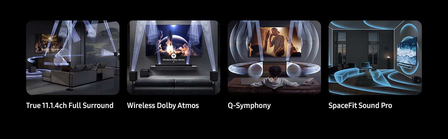 Dizajniran za isporuku zvuka iz svakog kuta – s 11 prednjih i surround kanala, uključujući stražnje zvučnike, jedan kanal dubokotonca i četiri kanala koji usmjeravaju zvuk prema gore – za istinski sveobuhvatan doživljaj.