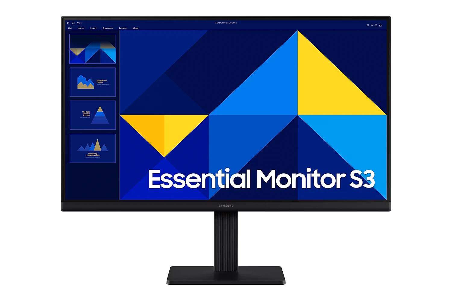 Samsung Essential Monitor S3 S30GD (model LS22D300GAUXEN) ističe se kao pametan izbor za korisnike kojima je važno povoljno rješenje s pouzdanom izradom, oštrim Full HD prikazom i fluidnom brzinom osvježavanja. Ovaj 22-inčni monitor nudi ravnu IPS ploču pružajući živopisne boje i iznimno široke kutove gledanja od 178° u horizontalnoj i vertikalnoj ravnini. Boje ostaju dosljedne i precizne čak i kada se pogled nagne na ekran, što ga čini izvrsnim za suradnju, pregled fotografija ili gledanje videa s više osoba.