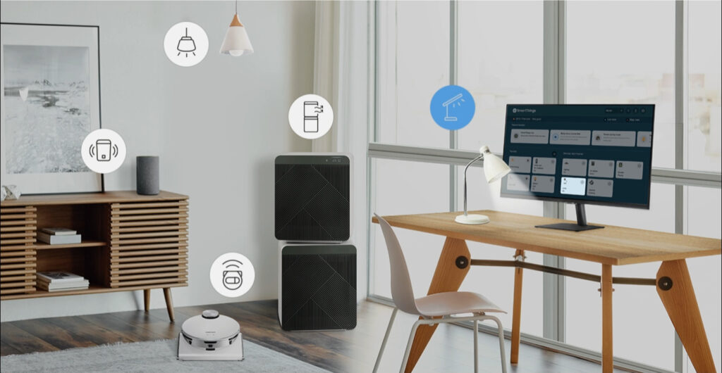 Pretvorite svoj Smart Monitor u upravljačko središte za Vaš dom tako što ćete ga, s pomoću aplikacije SmartThings, povezati s Vašim IoT kućanskim proizvodima. Opustite se, ugasite svjetla, navucite zavjese ili rolete i postavite termostat na savršenu temperaturu, a sve to s pomoću Smart Monitora, za savršeno opuštenu večer.