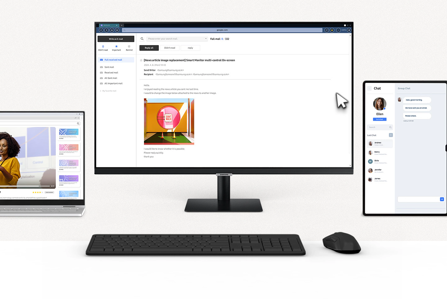 Dovedite svoj multitasking do maksimuma i bez napora upravljajte višestrukim uređajima koristeći se samo jednim mišem i tipkovnicom. Poboljšajte svoju učinkovitost uz samo jedan upravljački centar za Vaš Smart Monitor, Galaxy Tab i Galaxy mobilni uređaj.