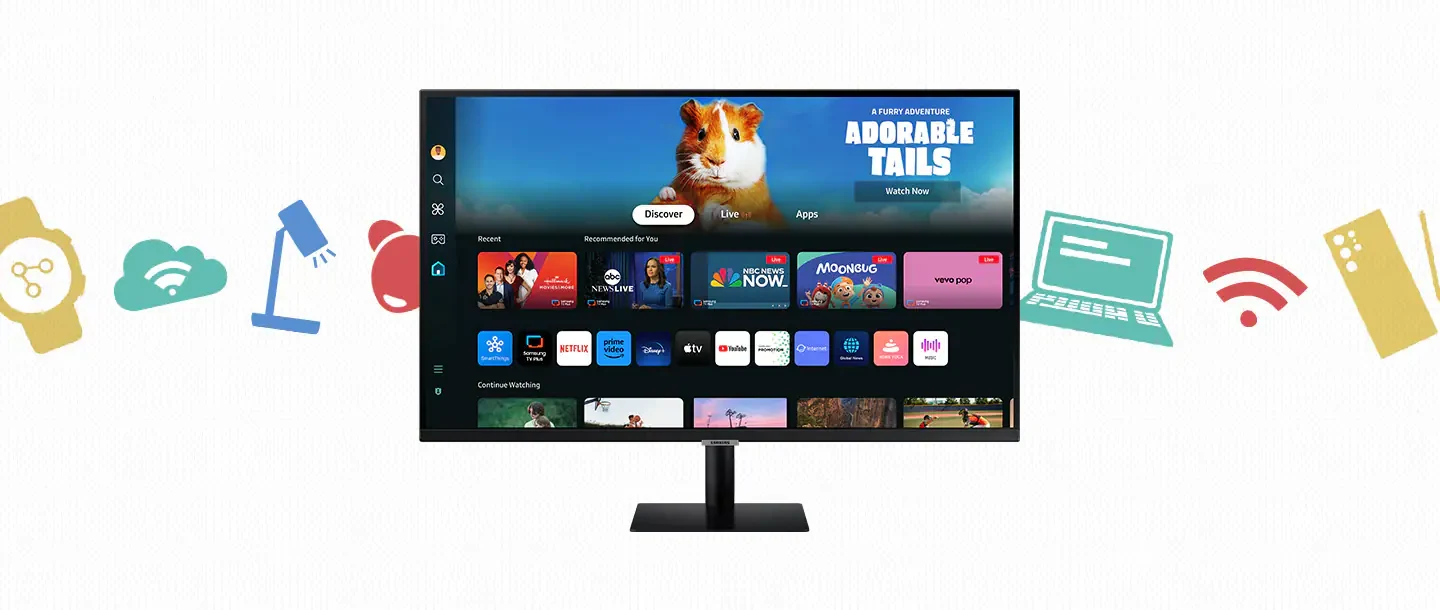 Želite li na najbolji način iskoristiti mali prostor ili jednostavno želite još jedan TV? Smart Monitor najbolji je izbor za Vas. Streamajte OTT sadržaje izravno s monitora ili pokrenite uslugu Samsung TV Plus i gledajte TV kanale sa sadržajima uživo ili na zahtjev bez ikakve doplate.