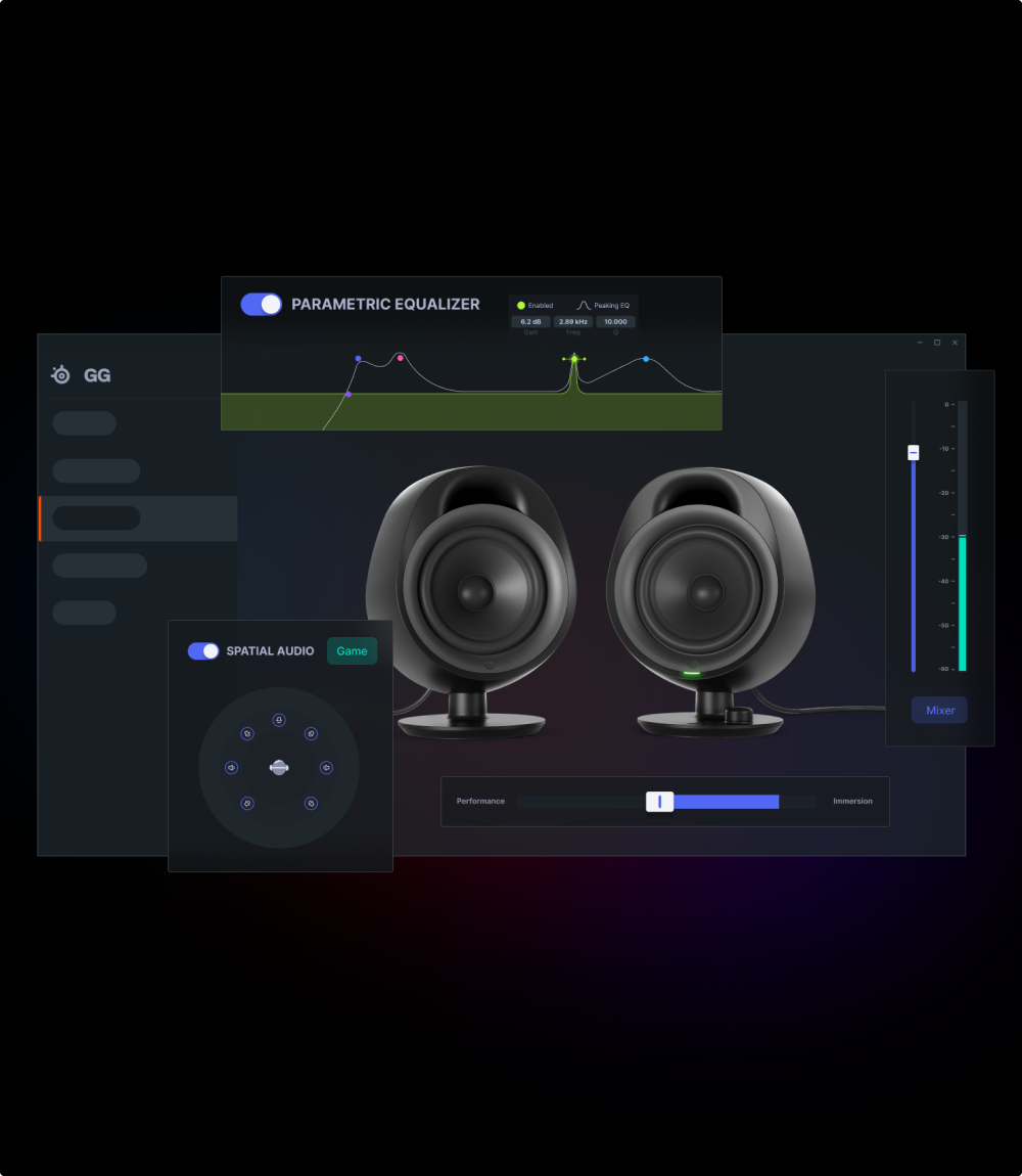 Unaprijedite svoju Arenu prostornim zvukom i prilagodite gotovo svaki aspekt zvuka pomoću 10-pojasnog parametarskog EQ-a i više, koristeći SteelSeries Sonar softver na računalu.