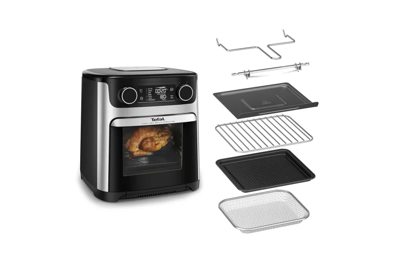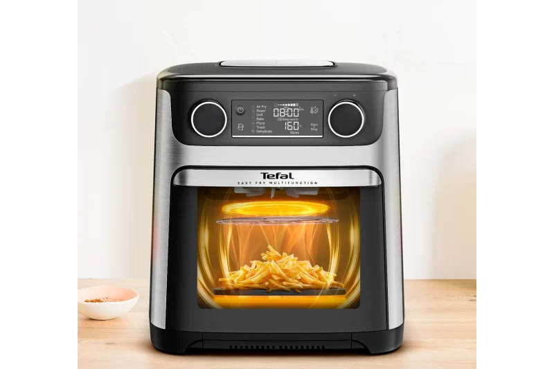 Tefal Easy Fry je višenamjenska friteza na vrući zrak koja nudi potpunu svestranost i velikodušan kapacitet od 15 l za pripremu kompletnih obiteljskih obroka odjednom. Zahvaljujući ekskluzivnom dvostrukom sustavu zagrijavanja i Extra Crisp tehnologiji, možete birati između 9 automatskih funkcija kuhanja i postići ukusne i zdrave rezultate pripremljene u tren oka. Pecite krumpir ili cijelo pile na ražnju, pripremite pizzu, ispecite kolač, sušite voće i još mnogo toga — sve to uz uštedu vremena i manje energije!