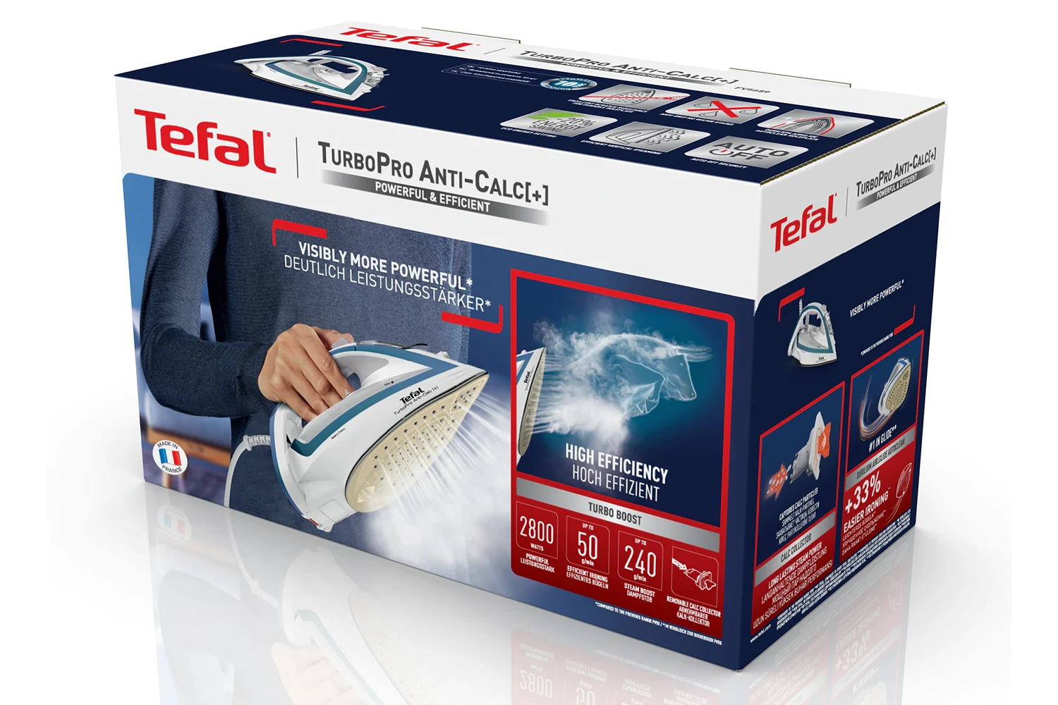Sa tehnologijom pogona pare dizajniranom za prodiranje pare duboku u tkaninu, TurboPro Anti-Calc donosi odlične rezultate glačanja i dugotrajnu učinkovitost.