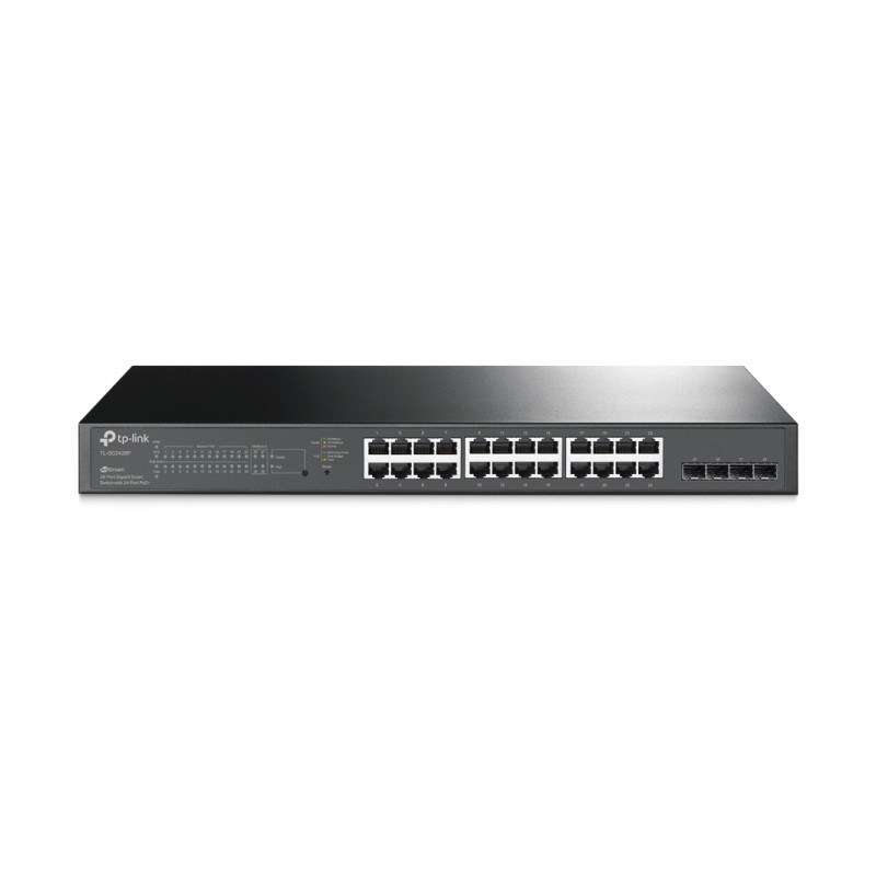 TP-Link Omada JetStream 24-port Gigabit L2 PoE+ Smart preklopnik (Switch), 24×10/100/1000M RJ45 port, 4×Gbit SFP, 802.3at/af, 19″ 1U rack mount (250W)