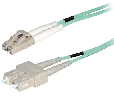 Transmedia OM 44-20 – Fibre optic OM4 Patch cable LC-SC Multimode (50 125 ) Duplex With dust covers Jacket: PU LSZH Colour: aqua Each cable packed in a polybag with test protocol Up to 10 Gbit Ethernet 20 m