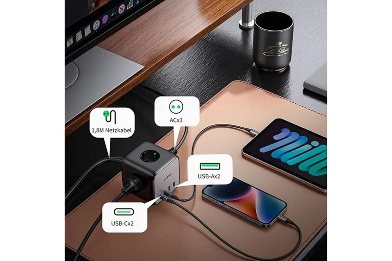 Visokokvalitetni produžni kabel s dvije Schuko utičnice (Type F) i USB priključcima (2 x USB / 1 x USB Type C) cijenjene marke Ugreen iznimno je koristan gadget u svakom domu ili uredu. Omogućit će vam istovremeno punjenje do 5 uređaja putem standardne Schuko utičnice i dva različita USB priključka (uključujući USB Type C), čime se osigurava izvanredna praktičnost korištenja opreme.